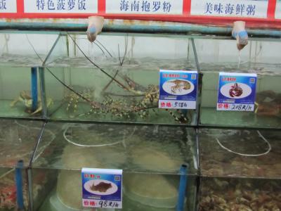 Nach dem Frühstück sind wir dann zum Strand gelaufen und haben uns in ein Restaurant gesetzt und was getrunken. Und da alles Seafood ist, haben sich dann einige Besucher welches bestellt aus je einem der Aquarien. Der Fisch wurde per Kescher rausgeholt, auf den Boden geschmissen und mit ner Eisenstange getötet. Ich war bedient!!!! Auch, wenn ich weiß, daß diese Tiere sterben werden, sehen will ich es nicht! Sind dann noch durch die Gegend gelaufen, ganz China war am Strand und hat getanzt und gebadet. War mal ganz interessant auf jeden Fall. Naja, dann bekamen wir Hunger, war ja schon Abend. Und wo sind wir hin? Genau! Seafood! Ich esse leider maximal Captain Iglo, ich mag einfach keinen Fisch. Hab mir dann aber Gemüse bestellt, das hatten sie glücklicherweise. Sind dann noch durch die Stadt gelaufen und dann zum Hotel.