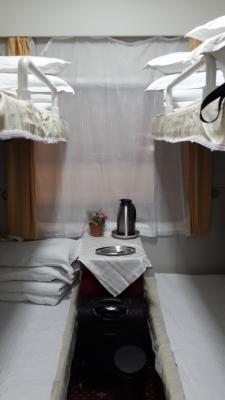 Wir wurden dann auf verschiedene Waggons verteilt. Man hatte ja entweder die Holzklasse gebucht wie die meisten oder die Softbett-Klasse. Beim ersten Anblick sah das gar nicht mal so schlecht aus. Näher hingucken geht wirklich gar nicht, dann findet man die Haare der Vorgänger und die Flecken auf der Bettwäsche.