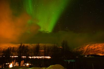 Nordlichter zu beschreiben ist wirklich schwierig. Sie können aus dem Nichts auftauchen und im ersten Moment denkt man, daß da Wolken sind, die irgendwie zackig aussehen, bis sie ihre volle Leuchtkraft erreichen und man sieht, wie sie sich am Himmel bewegen. Das Spektakel kann mal nur ne Minute dauern oder aber auch Stunden. Und so haben wir 2 Touren mitgemacht und uns wirklich alles abgefroren bei -15 Grad, aber es hat sich gelohnt.