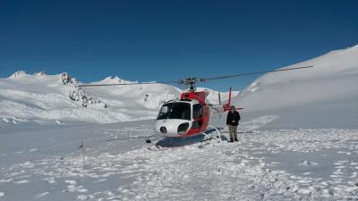 Morgens haben wir einen Rundflug über den Gletscher gemacht. Jeden Cent wert und viel zu schnell vorbei. Ein Flug dauert eine halbe Stunde und man fliegt mit dem Helikopter in die Berge. Der Pilot hat viel über die Gegend berichtet, noch andere Gletscher gezeigt und dann sind wir dort mitten im Schnee in den Bergen gelandet. Wie unwirklich das alles ist, man steht im Schnee, auf einem Gletscher, keine Wolke, strahlende Sonne – 2 Wochen zuvor war man mitten im tiefsten Smog.
