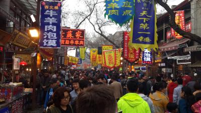 Unser Fahrer hat uns dann zu einer Pagode gefahren, die sehr berühmt ist. Auch total schön gelegen, umgeben von einem tollen Park. Sehr buddhistisch. Danach waren wir an der alten Stadtmauer, die einige Kilometer lang war und die Stadt umgibt und auf der man wandern kann. Von da aus sieht man einen Drumtower, die alten historischen Gebäude und Hutongs. Alles total gepflegt und gut erhalten. Anschließend wurden wir in das muslimische Viertel gebracht. Hier befindet sich wohl die größte Essenstraße Chinas (zumindest kam es mir so vor). Soviele verschieden Gerichte, es dampfte und duftete überall. Natürlich war es auch überall ziemlich voll…